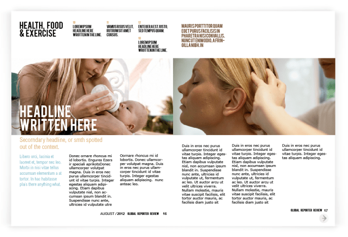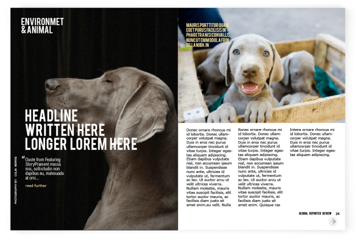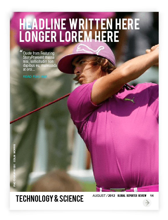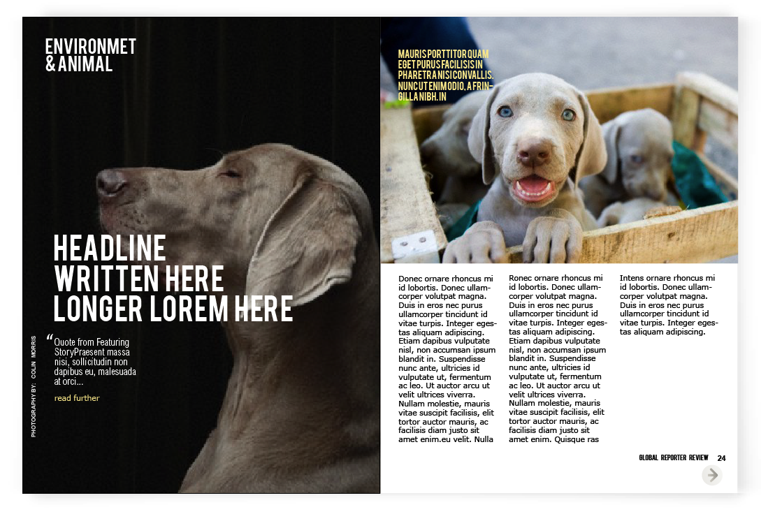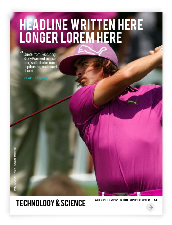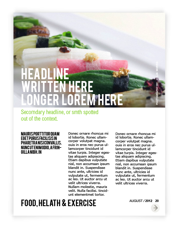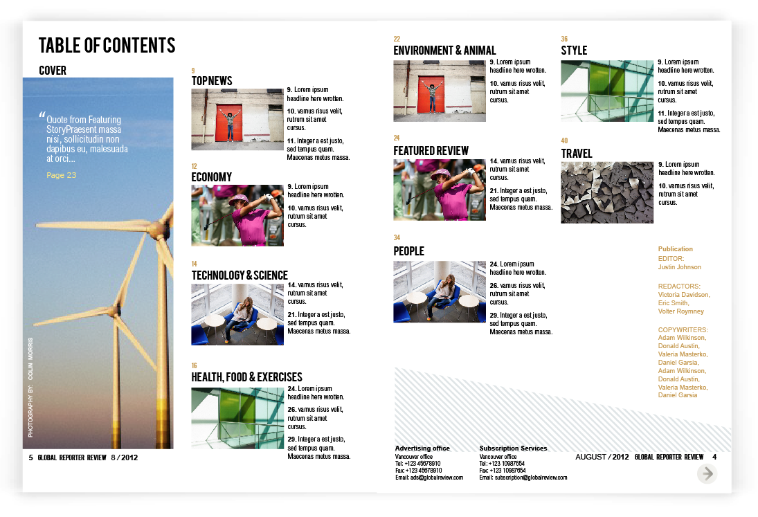 Layout for Canadian on-line Spence Magazine was created for iPad & print according to the style , where clean background, a lot of photography space & quoted text are spotted out on each page, because of its’ niche – review.