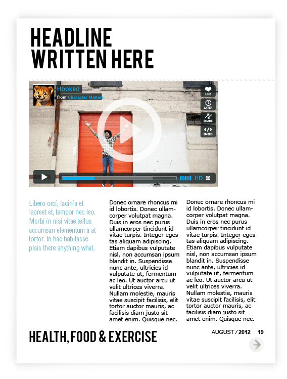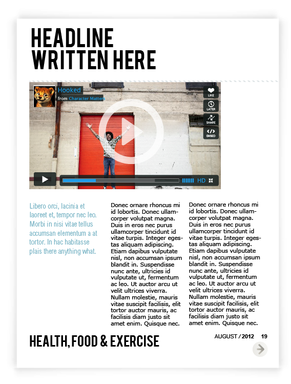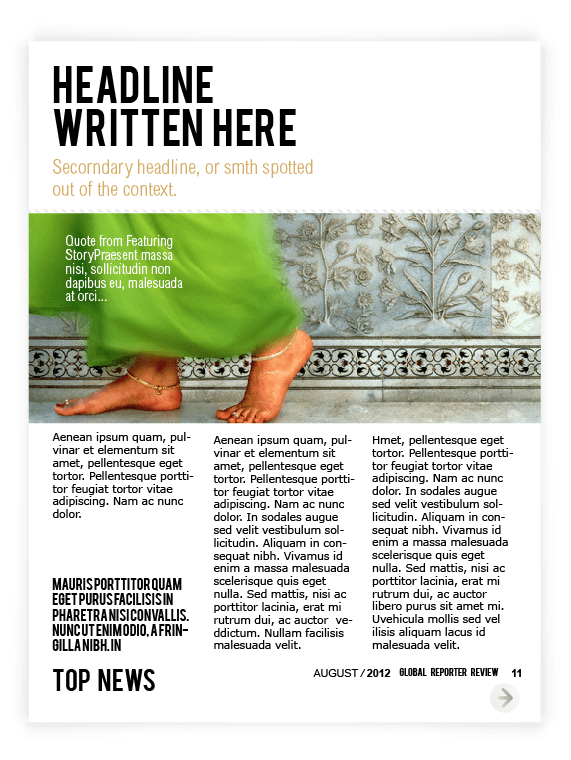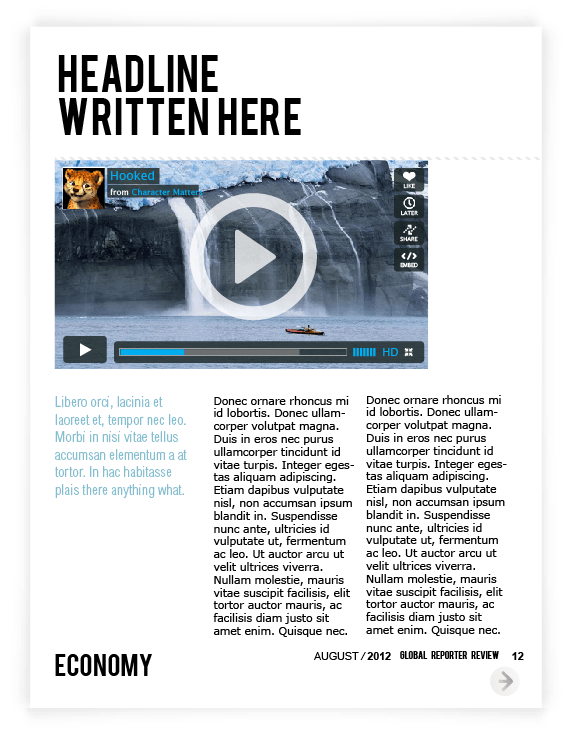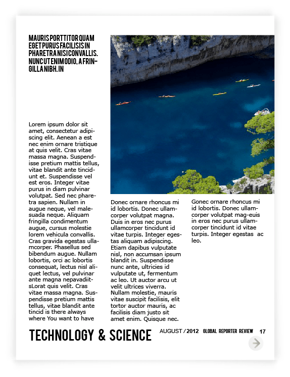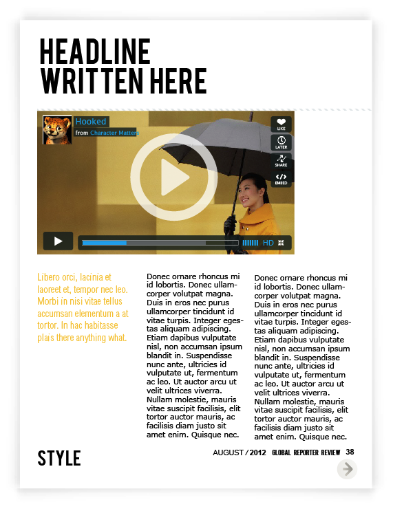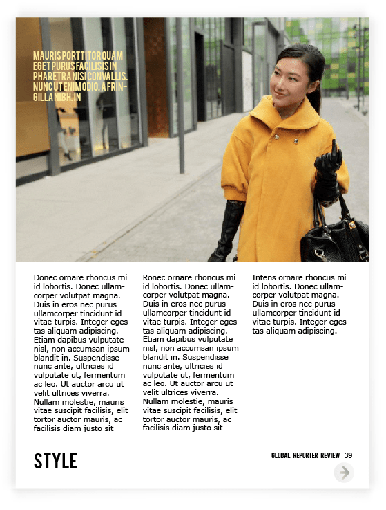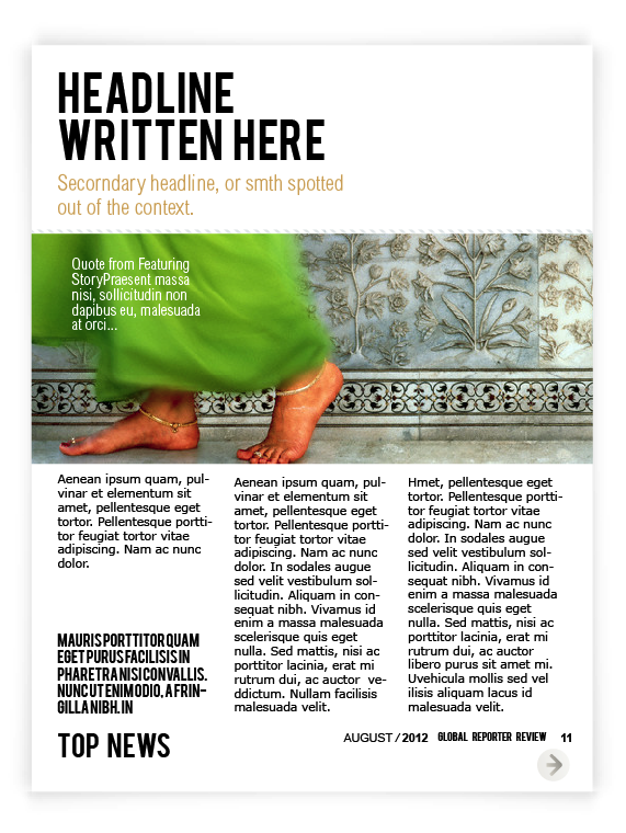 Layout for Canadian on-line Spence Magazine was created for iPad & print according to the style , where clean background, a lot of photography space & quoted text are spotted out on each page, because of its’ niche – review.