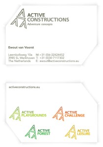 Business Card for Activeconstrucitons.eu As previous done logo & brochure, business card was created in the same way. On recycled paper stock, with angled cut-off corners to repeat the tilting of the logo.